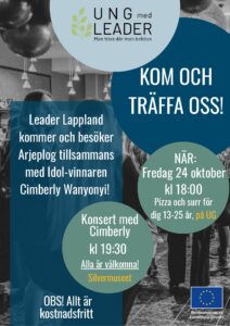 24 oktober 18:00 - 19:30 Leader Lappland besöker Arjeplog tillsammans med Idol-vinnaren Cimberly Wanyonyi!